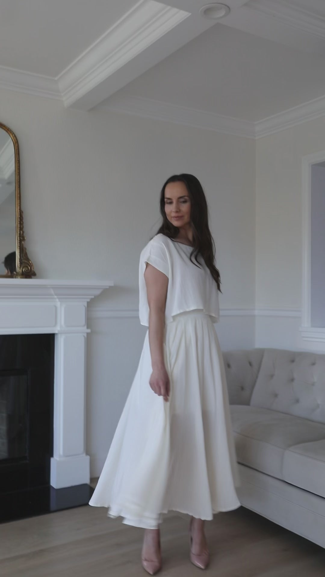 Paige Cream Crop Top and Skirt Set