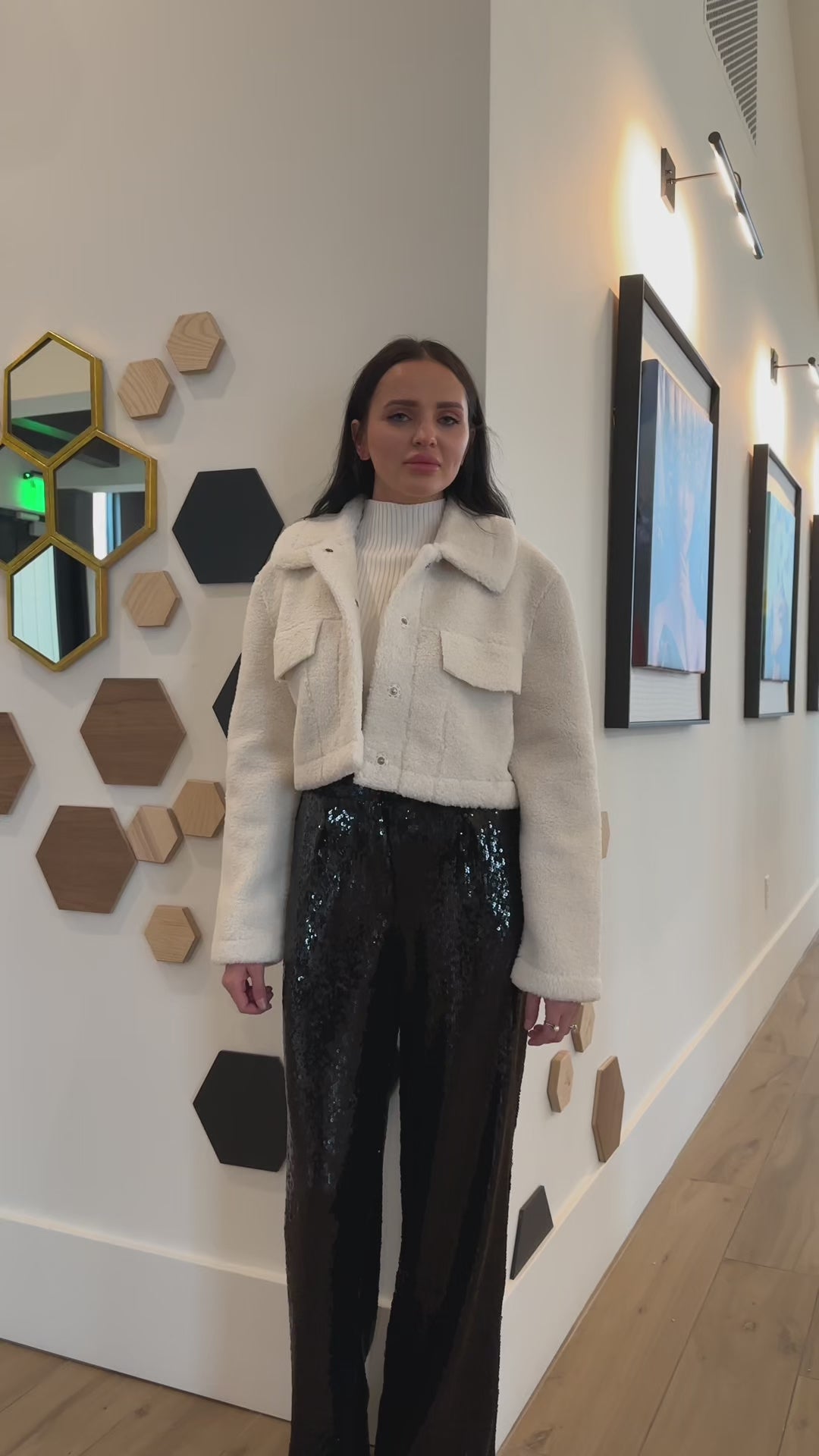 The Carter White Sherpa Jacket boasts a cropped, cream design with cozy sherpa material and a classic collared neckline. With its long sleeves and faux front pockets, this jacket is both fashionable and functional. Stay warm and stylish in this must-have piece for winter.