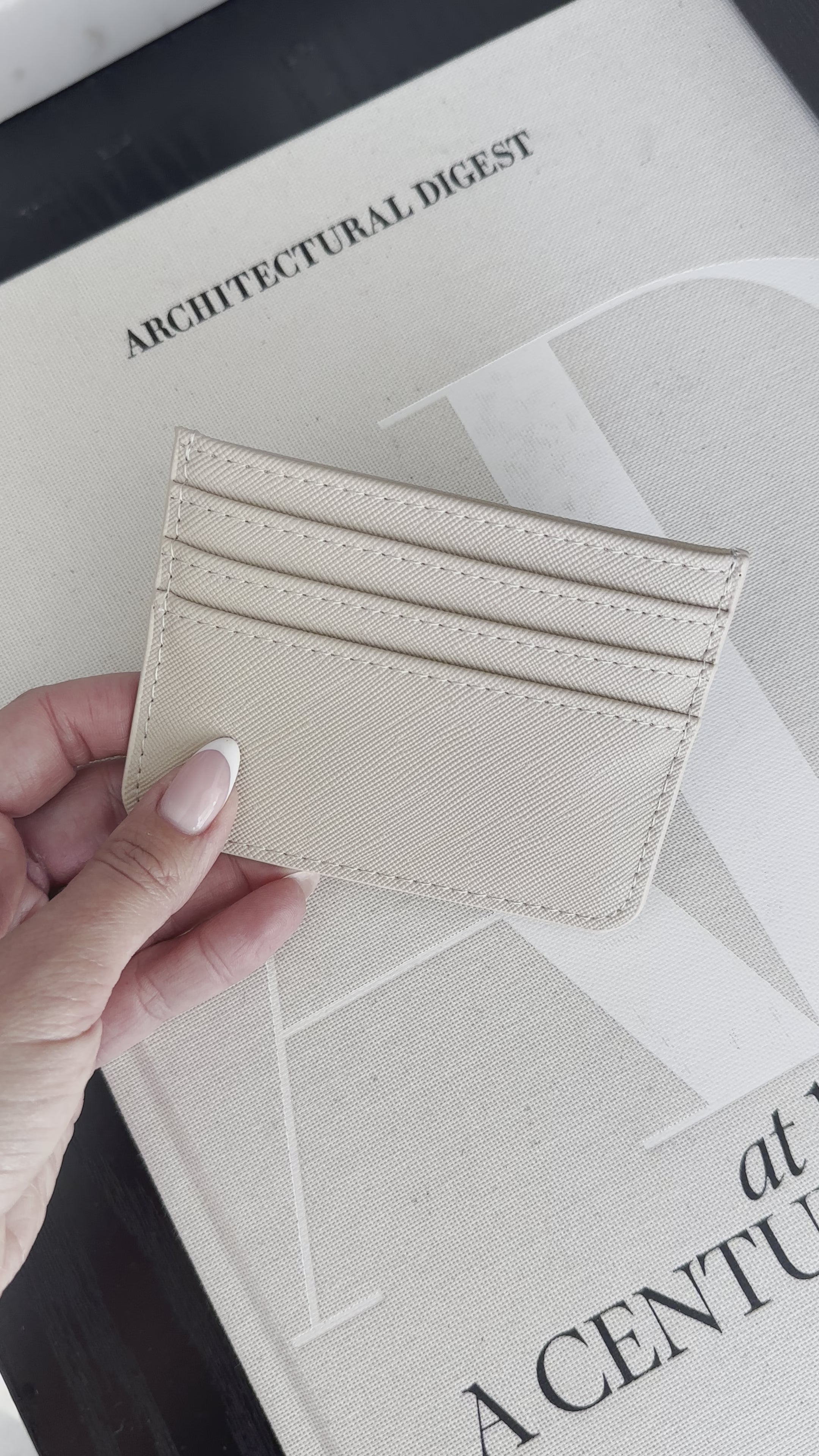 This Beige Card Holder is the perfect combination of style and functionality. Made from high-quality vegan saffiano leather, it's sleek and slim design includes multiple slots, making it ideal for everyday use.